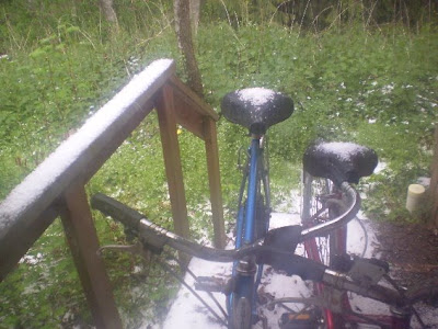 ...it's HAIL. No kidding! We had the craziest hail storm yesterday. Never in all of our years have we seen a hail storm that poured down for 20+ minutes and coated the ground like snow.